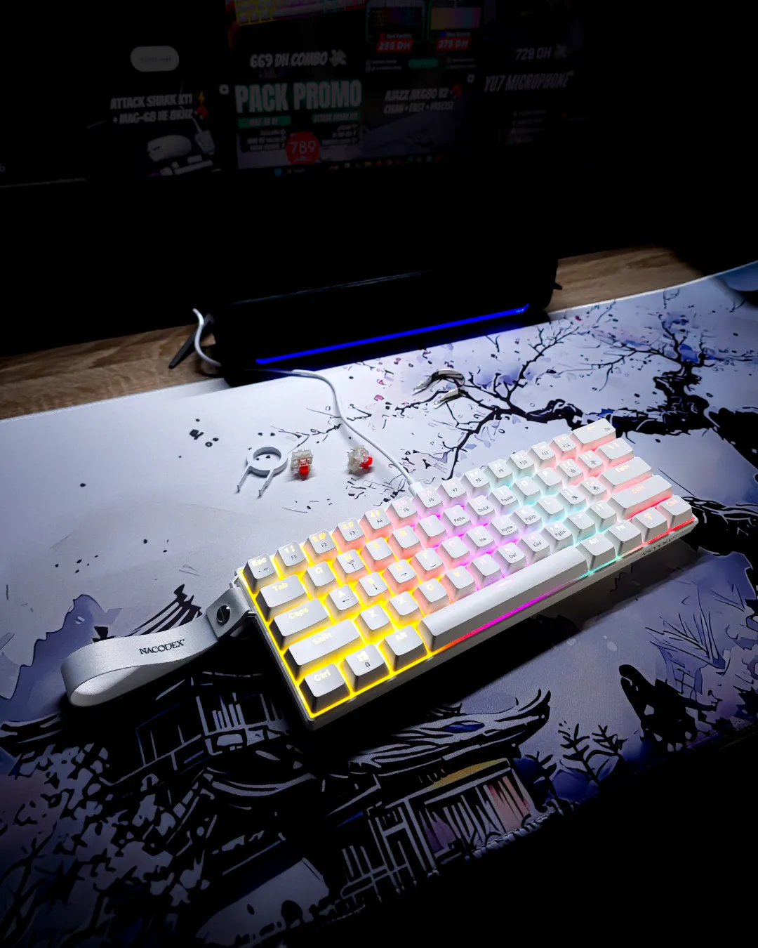 GM68-V2 Mechanical Keyboard – 68-Key Compact Layout, Hot-Swappable, Full RGB with Software, Wired Type-C (Black & Coffee)