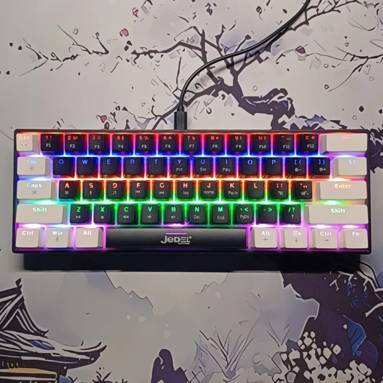 JEDEL KL69 60% Wired Mechanical Keyboard – Red Switches, Compact 61-Key Layout, RGB Backlighting, USB Plug & Play Keyboard for Gaming & Office Use (Black & White)