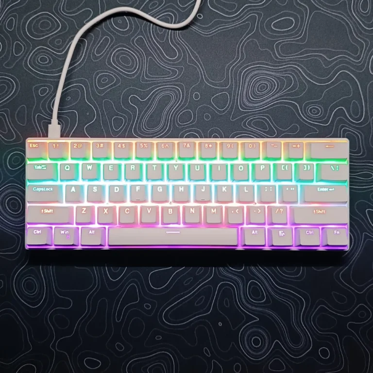 H61K 60% Compact Mechanical Keyboard – Blue Switches, RGB LED Backlight, 61 Keys Mini Gaming & Office Keyboard for PC/Mac/Xbox – with USB Cable (White)