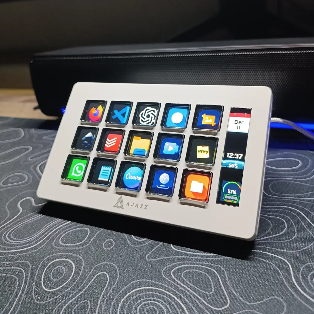 AJAZZ AKP153 Stream Deck Controller – 15 LCD Macro Keys, Side Display, USB-C Wired Streaming Keypad