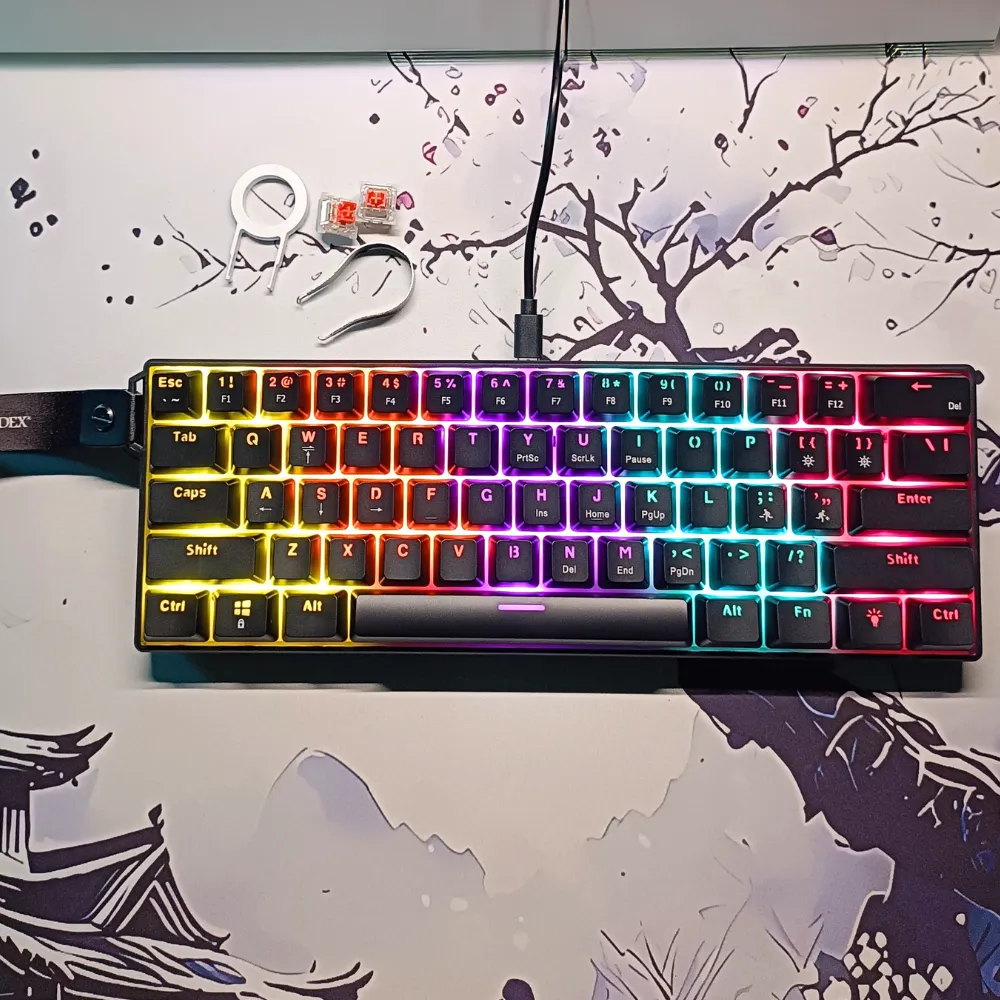 AJAZZ NK61 60% Hot-Swappable Mechanical Keyboard – Red Switches, RGB Backlight, Wired Connection, Compact 61-Key Design, with Keyboard Strap (Black)