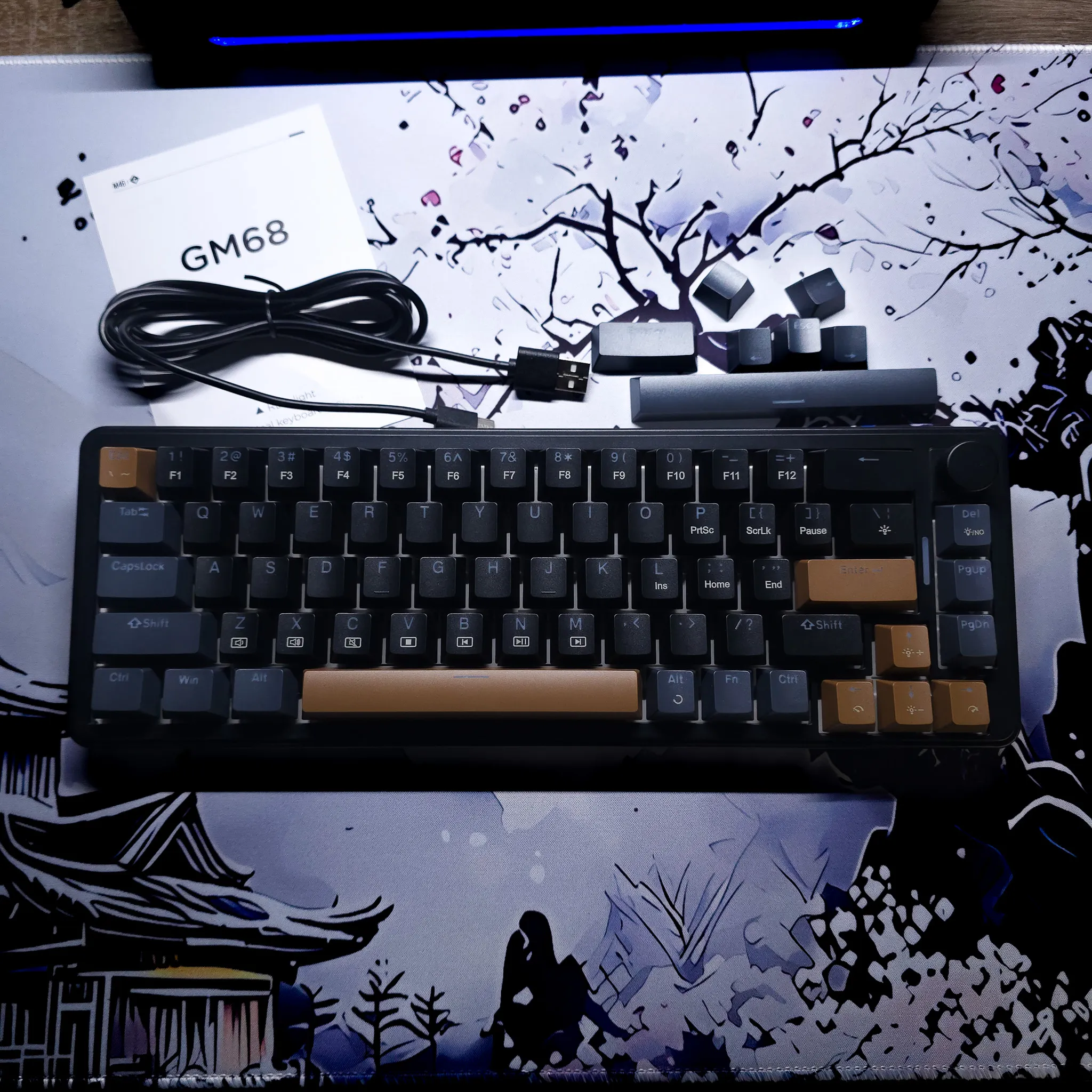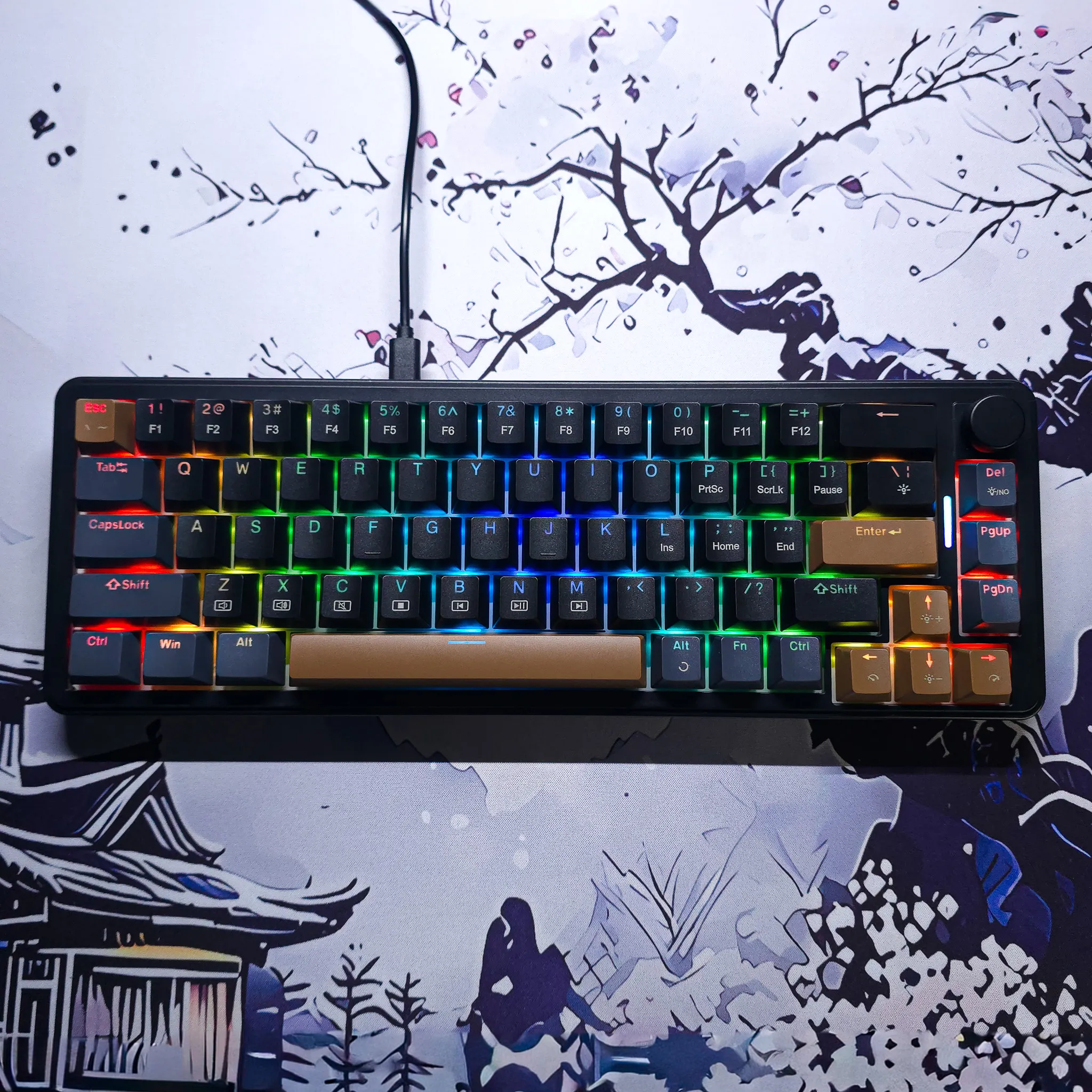 GM68-V2 Mechanical Keyboard – 68-Key Compact Layout, Hot-Swappable, Full RGB with Software, Wired Type-C (Black & Coffee)