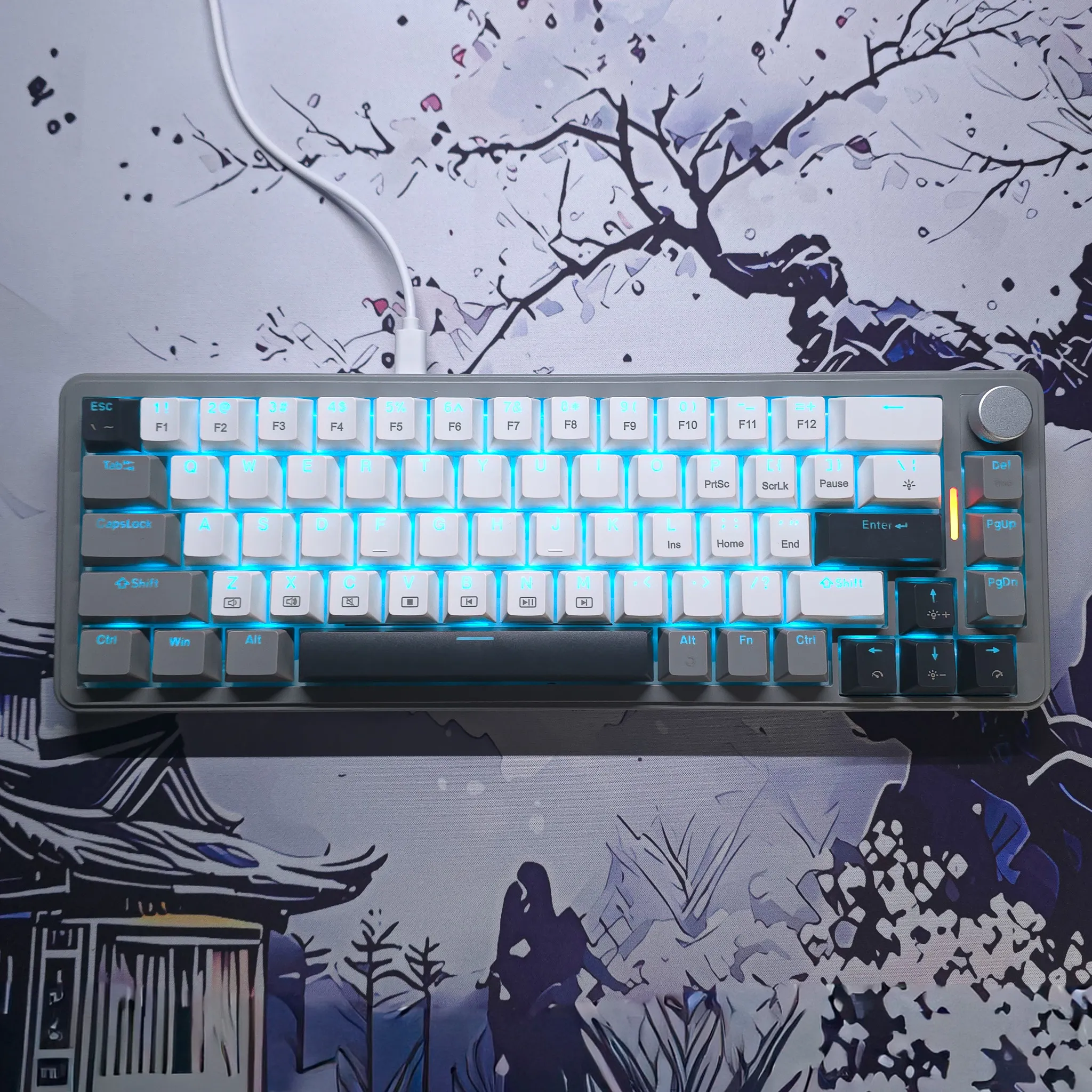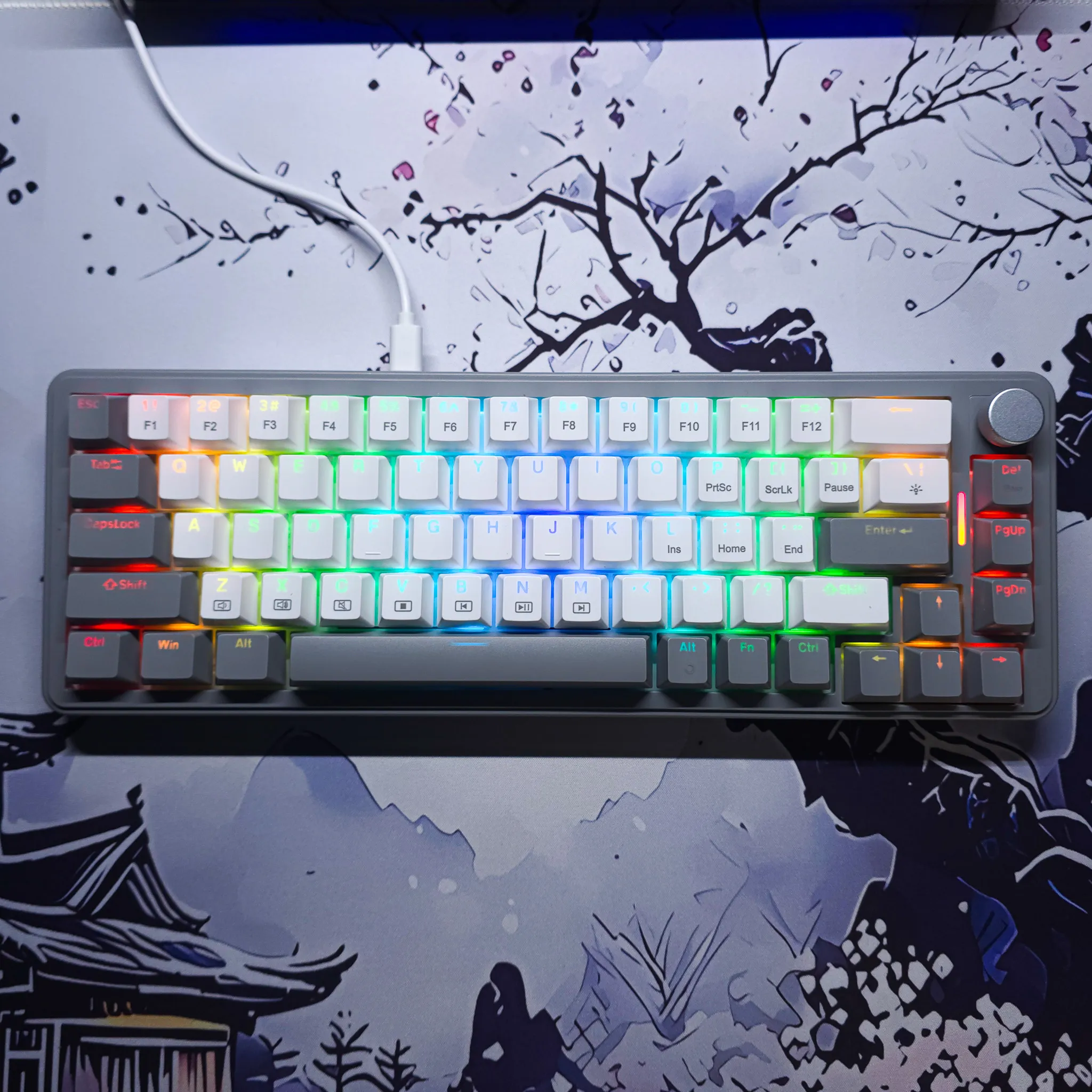 GM68-V2 Mechanical Keyboard – 68-Key Compact Layout, Hot-Swappable, Full RGB with Software, Wired Type-C (Grey & White)