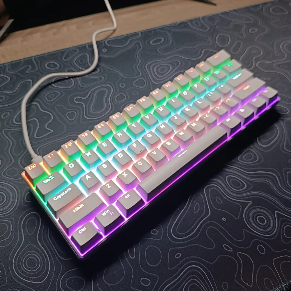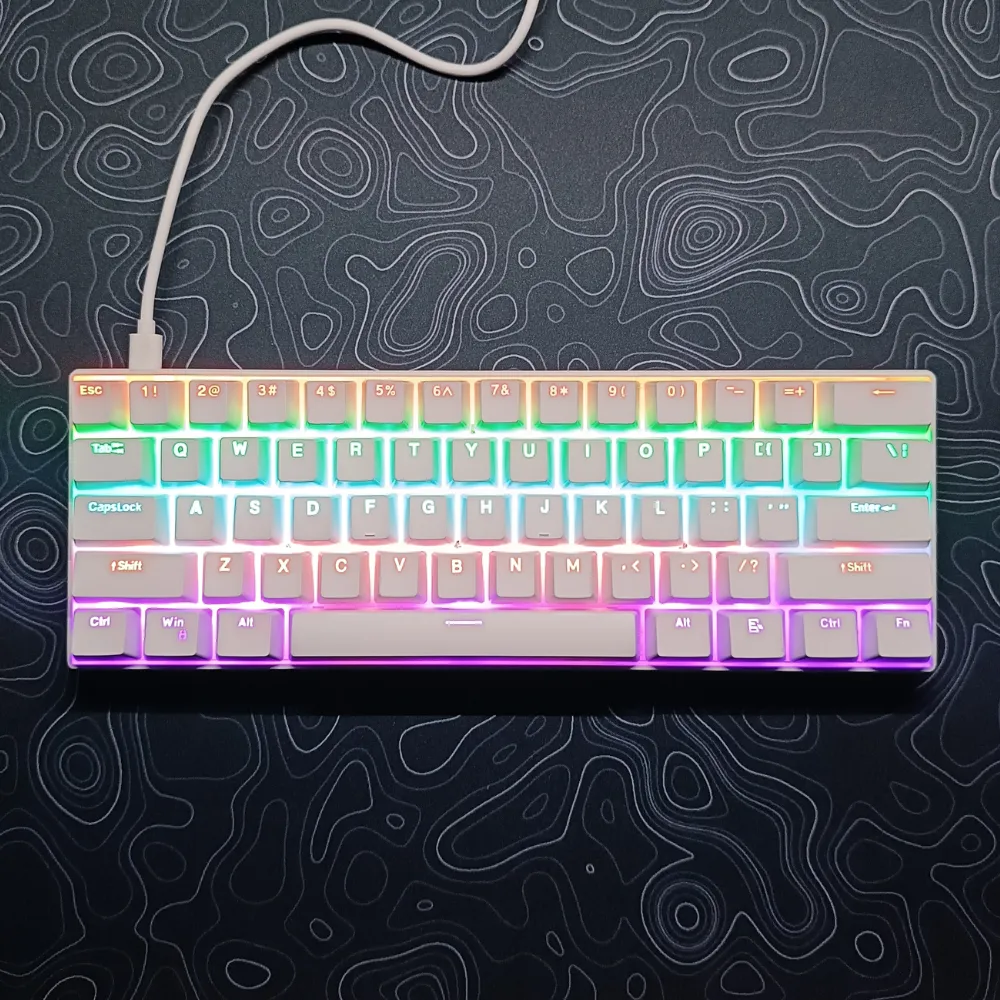 Equipped with Blue Mechanical Switches, the H61K delivers a satisfying clicky feel and instant response with every keystroke — great for both gaming and efficient typing. Its RGB LED backlighting lets you create your own lighting effects to match your mood or setup.