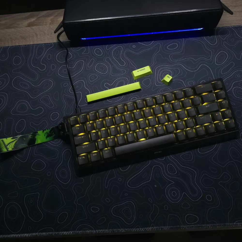 The 68-key compact layout (65%) saves desk space while keeping essential keys accessible — ideal for competitive setups and minimalist desks.