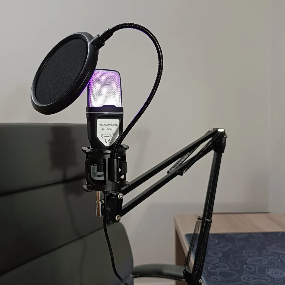 SF666R USB Microphone + Adjustable Microphone Stand Combo – RGB Plug-and-Play Mic with Pop Filter & Stand for Streaming & Gaming